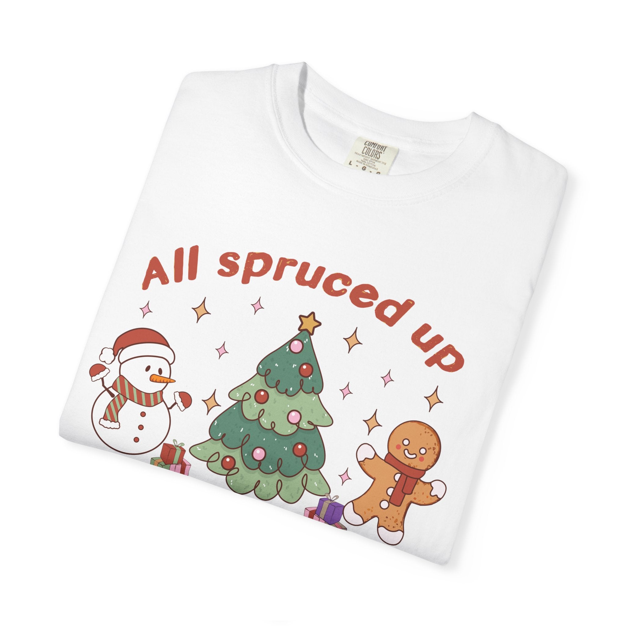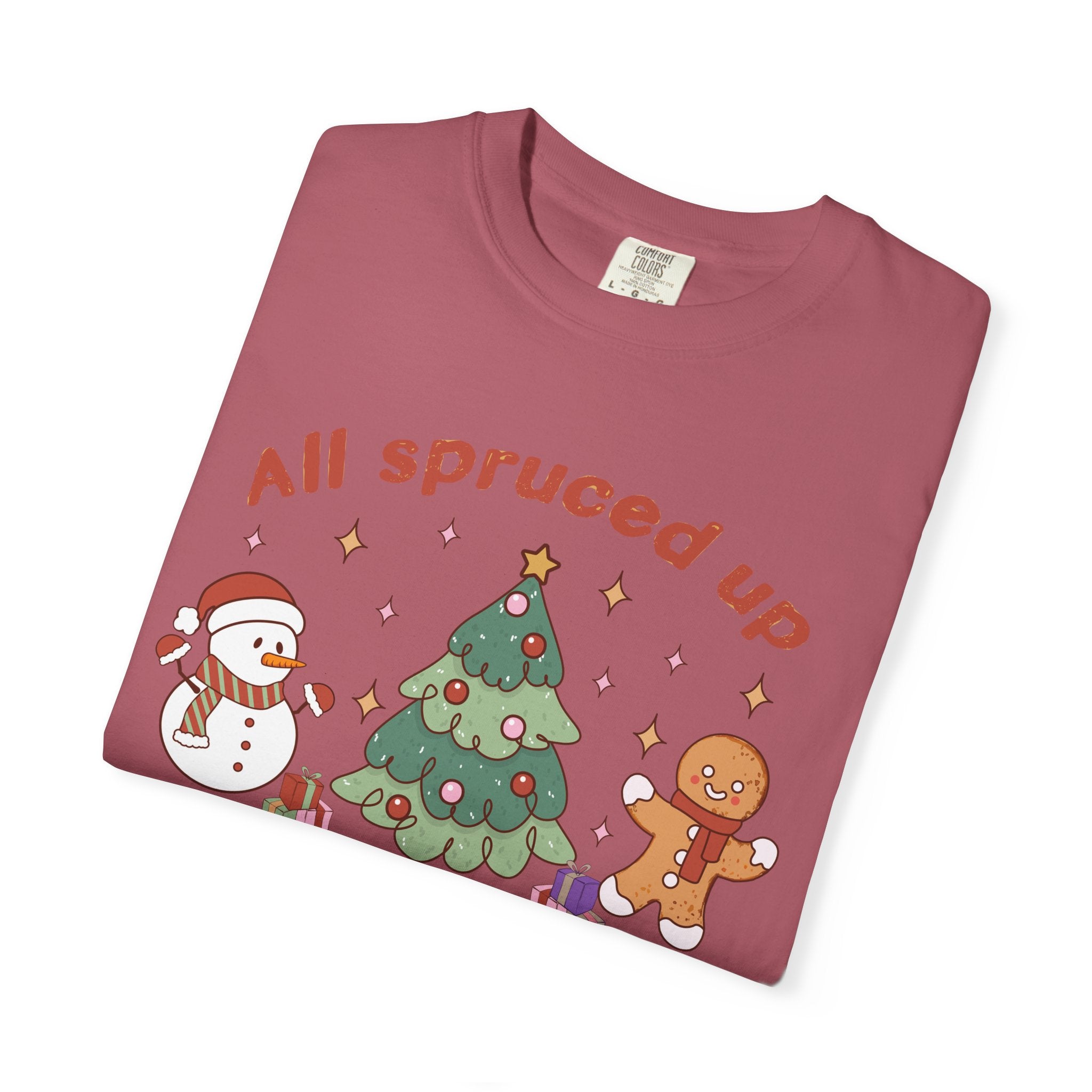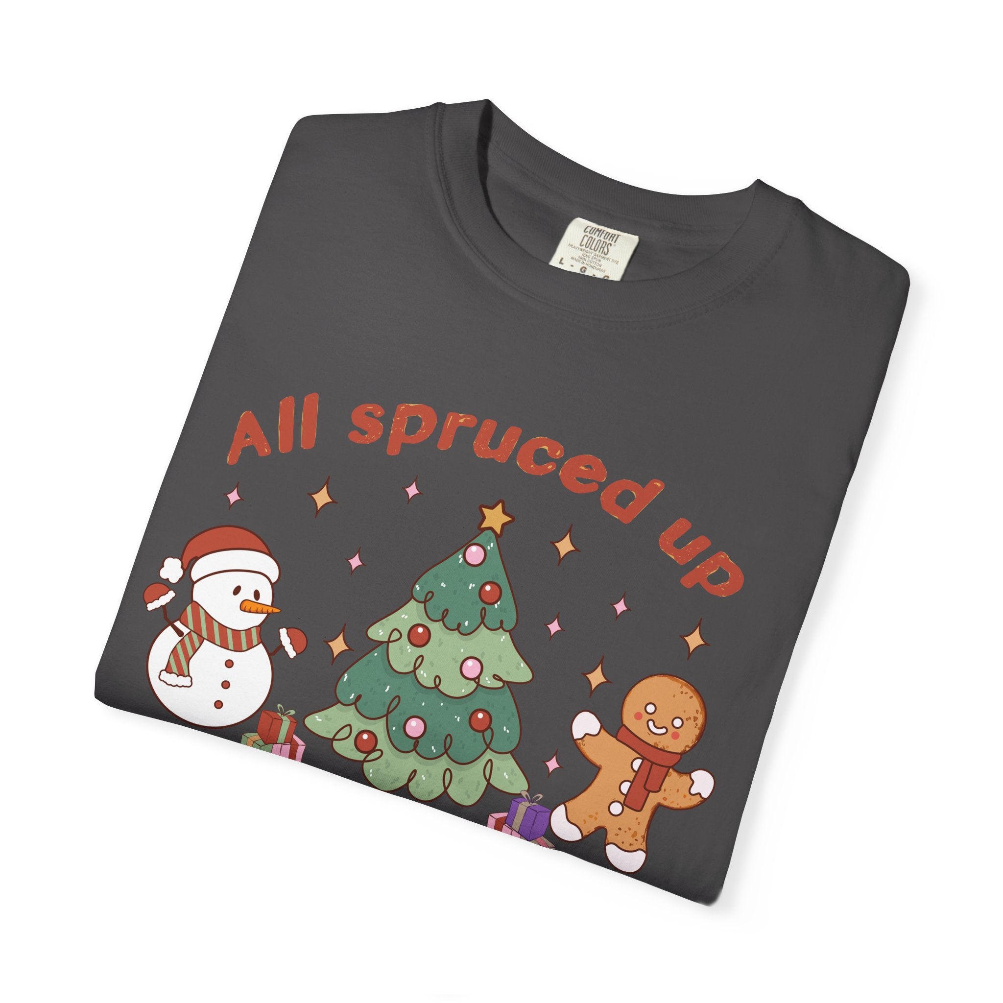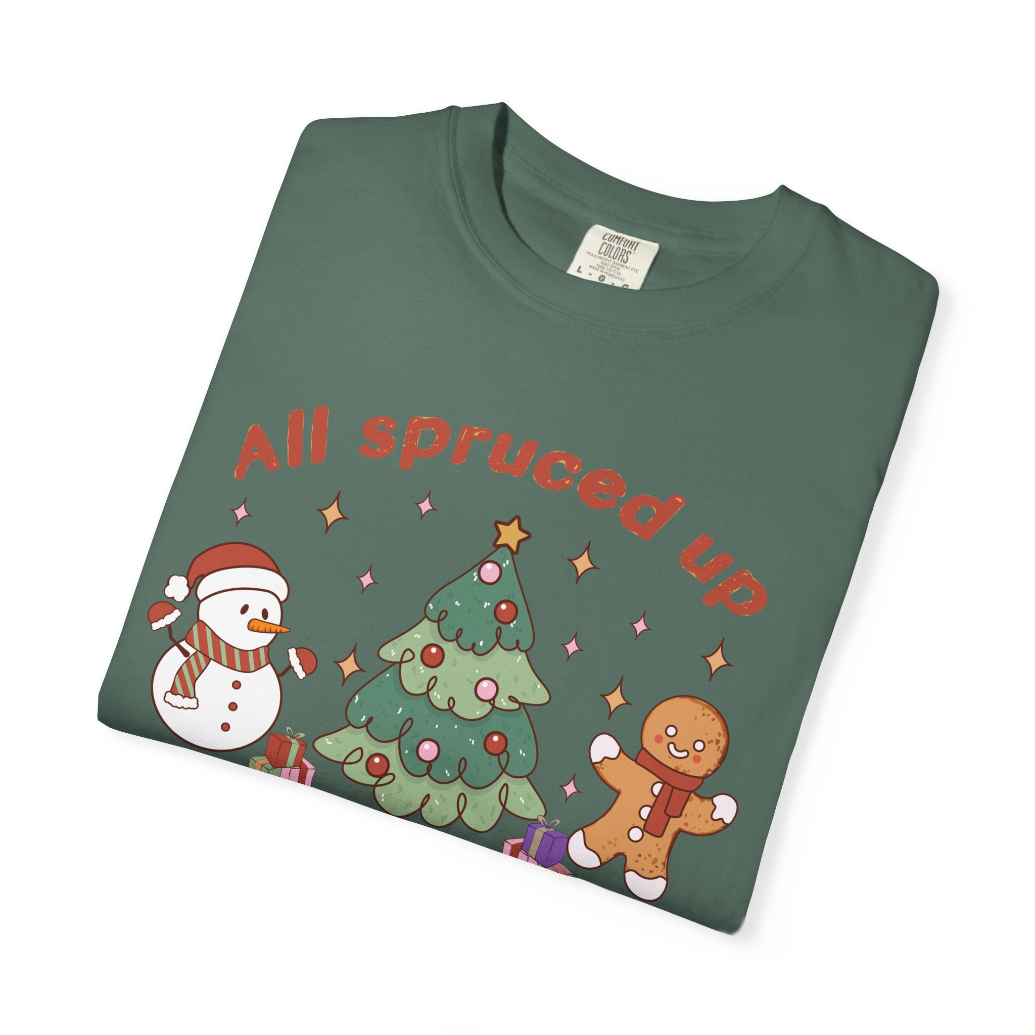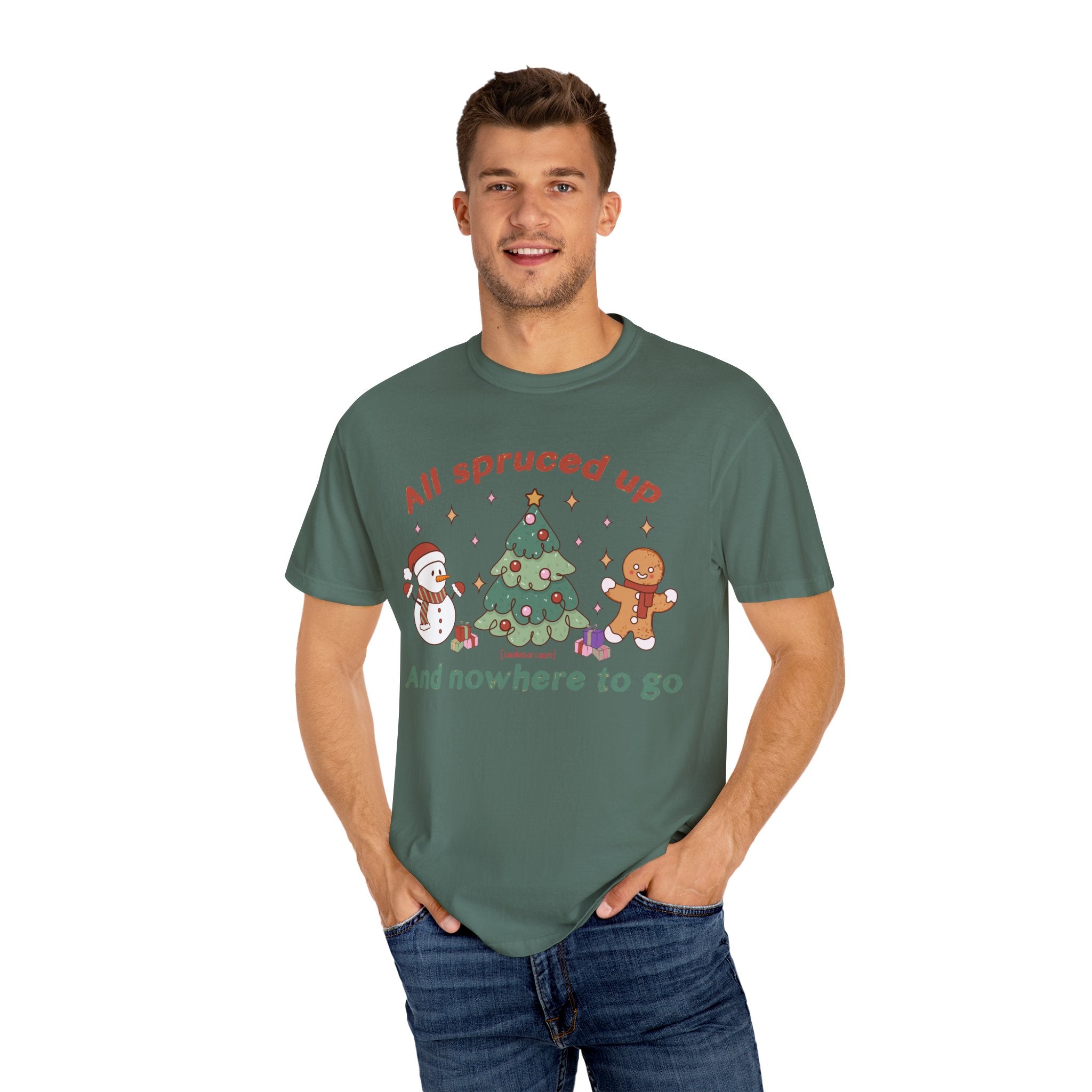 This relaxed, garment-dyed tee brings a cozy, nostalgic holiday scene to everyday wear. A soft, muted green serves as the...