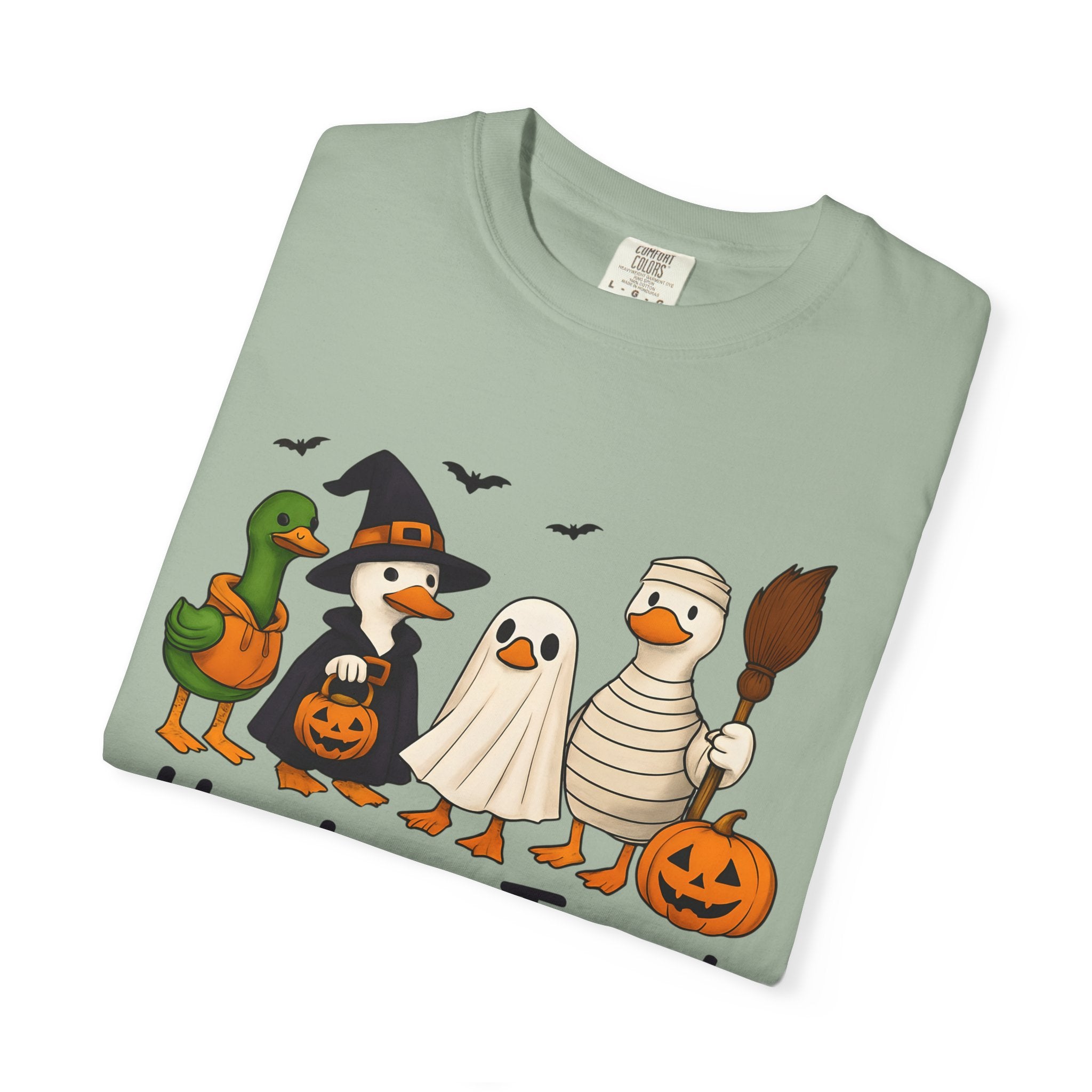 Perfect for adults who love a whimsical twist on Halloween fashion, this funny duck Halloween shirt also makes a delightful gift for spooky season fans.