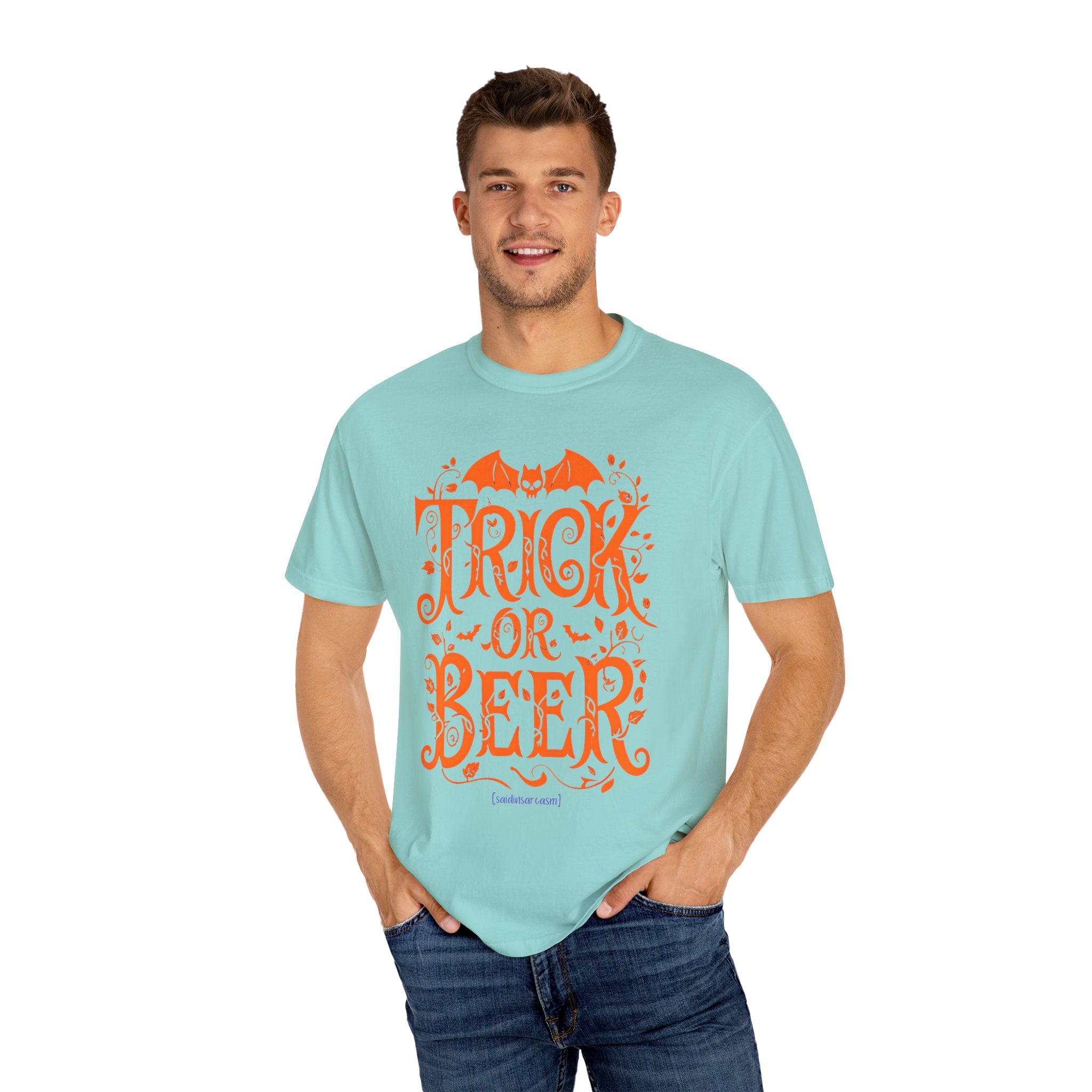 Skip the candy, bring the six-pack. This funny Halloween shirt is for anyone who thinks Trick or Treat peaked once you turned 21. “Trick or Beer” says it all — spooky vibes, sarcastic humor, and just enough sass to make your bartender smirk. Ultra-soft cotton that pairs well with bad decisions, late nights, and pretending your costume is just “being tired.” Proudly produced and shipped from the USA, because even sarcasm deserves local support.